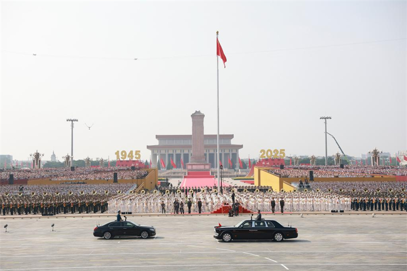 Le président chinois Xi Jinping a passé en revue les forces armées, mercredi à Beijing, lors d'un défilé militaire à l'occasion du 80e anniversaire de la victoire de la Guerre de résistance du peuple chinois contre l'agression japonaise et de la Guerre mondiale antifasciste.