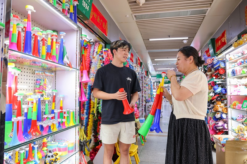 A neuf mois des débuts de la Coupe du monde de football 2026, qui aura lieu aux États-Unis, au Canada et au Mexique, la ville d'Yiwu, dans la province du Zhejiang (est de la Chine), connue sous le nom de « supermarché du monde », a déjà pris les devants dans la voie rapide de la croissance économique liée à la Coupe du monde.